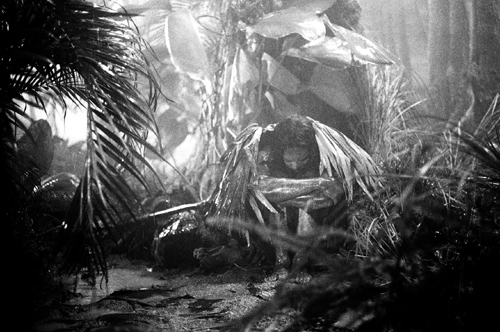 Martin’s overall aesthetic is one of a highly sensitive attention to detail, as, though it is obvious from the start that the environments are fabricated, the painted backdrops are but one element of the cinematic world Independencia consists of. Ronald de Asis’ and Arnel Labayo’s sound design evokes the claustrophobic heat of a dense, rural habitat, whilst Digo Ricio’s production brings the natural world to life through authentic sets that include the presence of birds and smaller animals. Lutgardo Labad’s pastoral score provides an underlying romantic melancholy, which, combined with Jeanne Lapoirie’s charcoal toned cinematography, results in a film that seems to encase its characters in the image that it presents; they move from one lush forest scene to another, as though within an unending, unambiguously cinematic loop. Though they have come to the jungle to for freedom, their boundaries are just as limited as those who remained in the town, and are defined by the film’s own construction.
