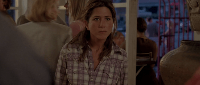 NOTES ON PERFORMANCE: Aniston really holds back here and is very convincing. Olivia is the kind of person with enough self-worth to remove herself from a bad work situation (the fancy school), but not enough to stop pining for her married ex-lover, or be defiant against the awful Mike, who insists on splitting her earnings when he accompanies her to jobs, despite sleeping with her and cleaning a couple of shelves. Aniston moves through each scene as though not actually present, and it’s only really when she’s calling her ex that we see a spark of energy. It works, because the film is leading to a set-up that requires us to believe she’ll start a relationship with someone who has ‘people problems’ just like her.