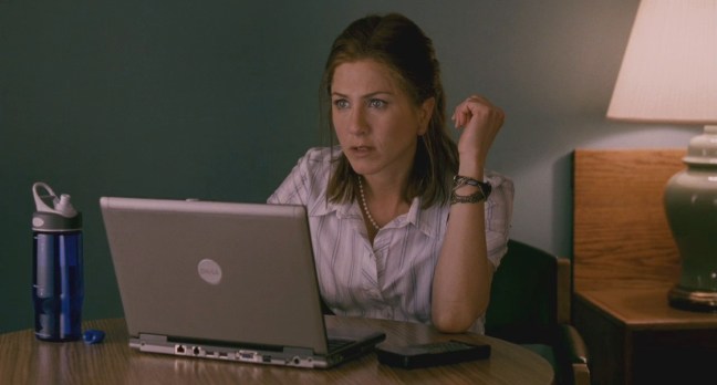 NOTES ON PERFORMANCE: The plot of Management is so creepy on paper – socially awkward man stalks woman persistently, demanding affection like a puppy – that initially it’s hard to see how the filmmakers are going to pull this off. That the film is watchable, thoughtful and occasionally funny, is due to Aniston’s well observed and hugely affecting performance. She presents Sue as someone at once at ease with, and slightly outside of her experience of the world. That she makes believable Sue’s resistance and curiosity about Mike is a great accomplishment. One scene in particular really showcases, with tremendous subtlety, how connected Aniston is to her character: after Mike travels to her hometown, Maryland, on a one-way ticket, Sue reluctantly spends time with him but naturally sends him home on the bus. When they part, Mike leans in to kiss Sue’s cheek, and in this moment, Aniston’s micro expressions convey the full range of Sue’s feelings – concern, affection, anxiety, sadness – which demonstrate her internal world and some of the reasons why she’s tolerating Mike. The moment is crucial in persuading the audience to believe in this ‘odd couple’ and Aniston nails it.
